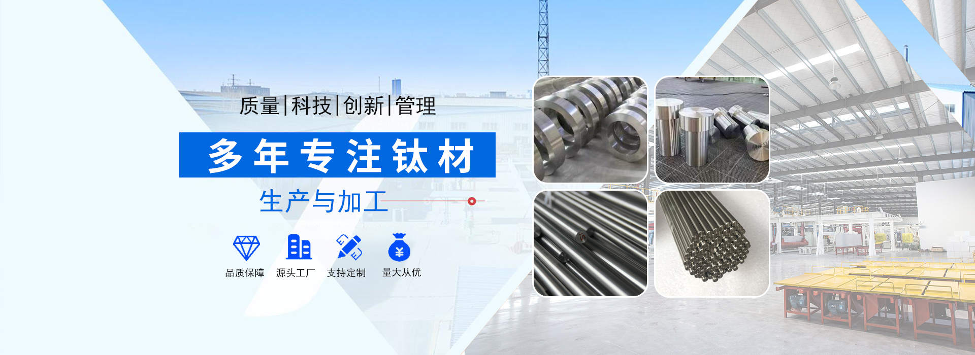 陜西辰軒鑫達(dá)金屬材料有限公司位于具有“中國鈦城”之稱的陜西寶雞高新技術(shù)開發(fā)區(qū),公司依托“中國鈦城”的雄厚的行業(yè)資源,強(qiáng)大的有色金屬科研及制造實(shí)力,完整的有色金屬工業(yè)制造產(chǎn)業(yè)鏈,形成了一套完整的生產(chǎn)流程,公司主要從事有色金屬的加工,生產(chǎn)及銷售及工業(yè)及民用鈦、鎳、鉬及其他稀貴金屬材料的深加工研究生產(chǎn)及國際、國內(nèi)貿(mào)易,集有色金屬材料銷售、產(chǎn)品設(shè)備制造及新產(chǎn)品開發(fā)為一體。主要以生產(chǎn)鈦材及其他金屬材料為主,主導(dǎo)產(chǎn)品有:鈦錠、鈦棒、鈦絲、鈦板、鈦法蘭等以及其他有色金屬材料:鋯板、鋯管、鋯棒、鋯鈀、鋯餅、鈮管、鈮棒、鉭板、鉭棒、鉭管等有色金屬。產(chǎn)品廣泛應(yīng)用于化工、冶金、石油、紡織、醫(yī)藥、輕工、環(huán)?!ぁぁ?/p> 查看更多+